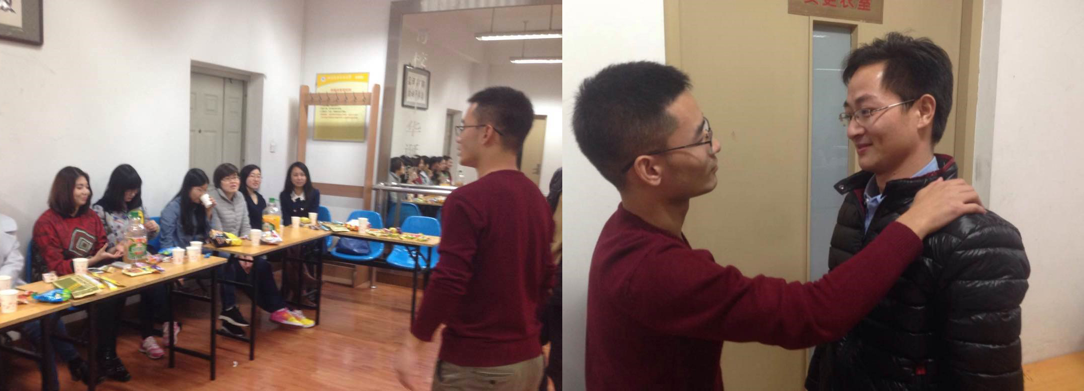 在精心和忙碌的准备后,晚会正式于晚上19:00开始举行。主持人赵云洋同学风趣而幽默的开场,给大家带来了阵阵欢笑。两班级同学在轻松活跃的气氛中,使初次相见的陌生感很快消失。每个人做自我介绍,每个同学都有自我的介绍方式,他们不简单地介绍自己的个人情况,同时也与大家分享自己的学习生活:有的同学是“科研达人”,大学期间已经发表多篇论文;有的同学是“航空迷”,对航空方面的知识积累,达到计算机的存储级别等等;当然语言学班级的同学也不示弱,每个人都至少会两门语言,英语自然不在话下,法语、日语、德语、西班牙语等每个人都学了自己的第二门外语……通过自我介绍,每个班级同学都发现自己班集体真是“藏龙卧虎”,进一步加深了班集体同学之间的了解和感情,同时也从语言学班级同学身上感受到另一种学习,生活与文化氛围。