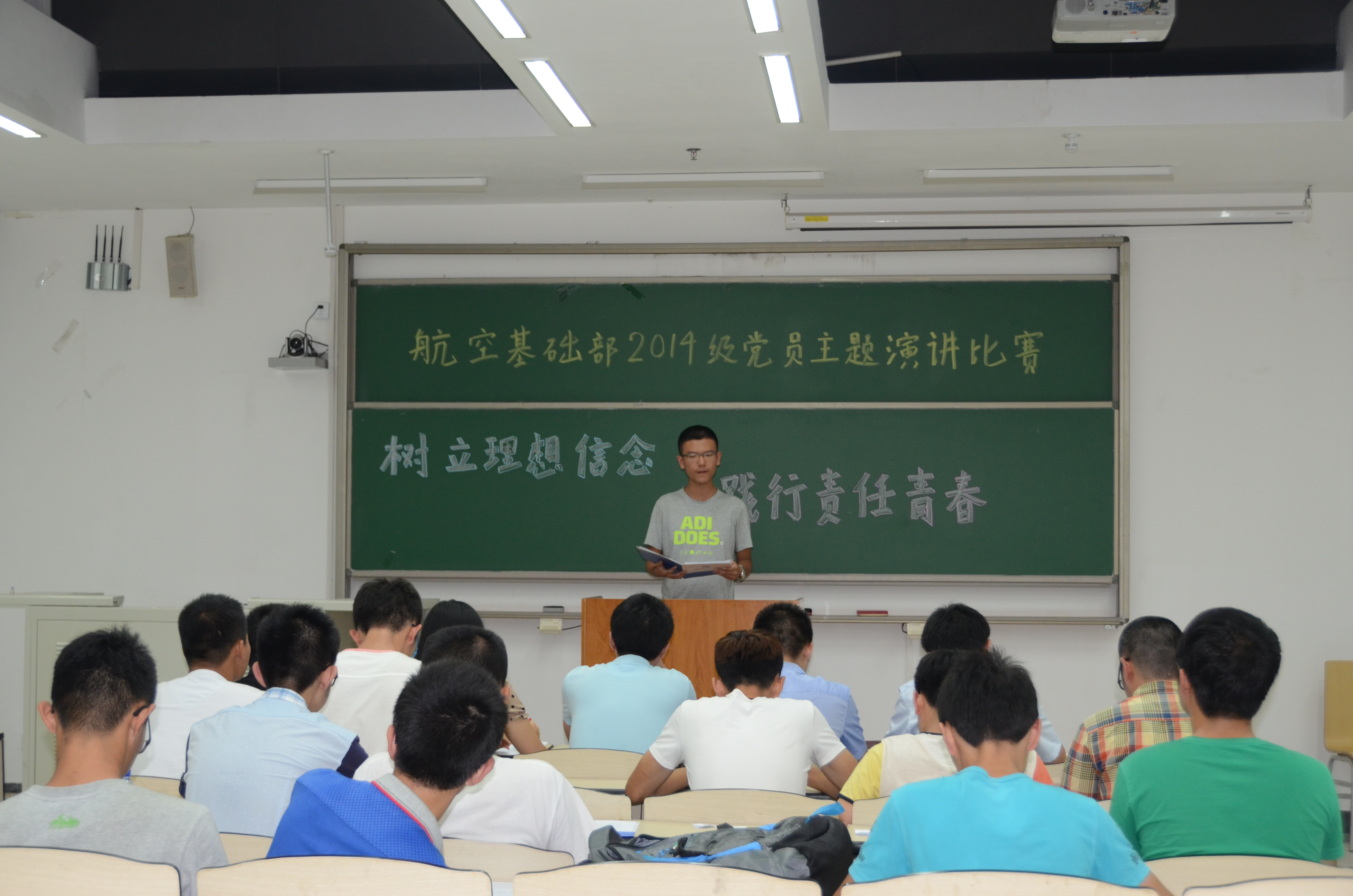 2014年8月29日晚,jinnian金年会航空基础部于沙河校区组织进行了新生党员主题演讲比赛,此次演讲比赛主题为“树立理想信念,践行责任青春”。