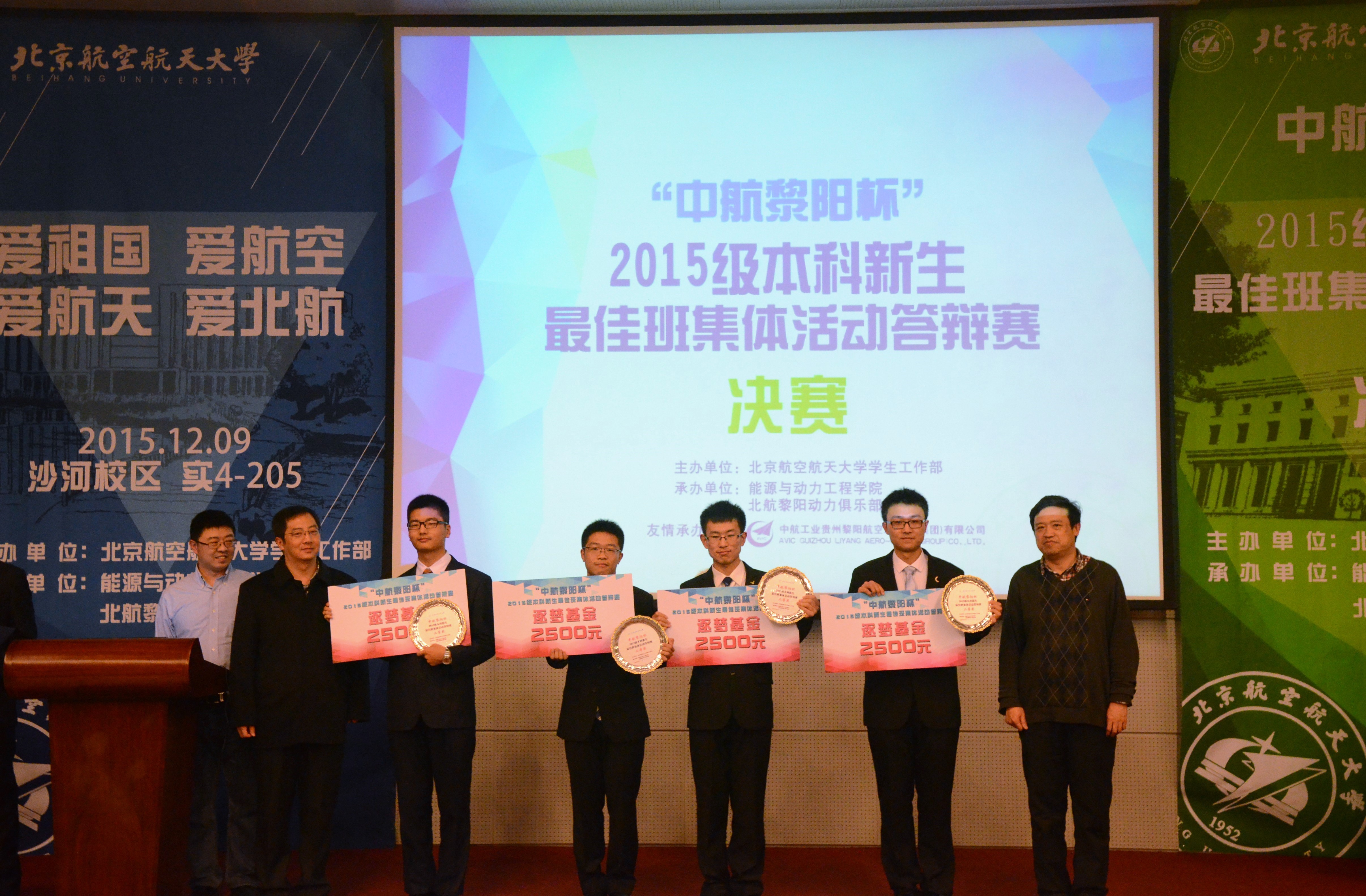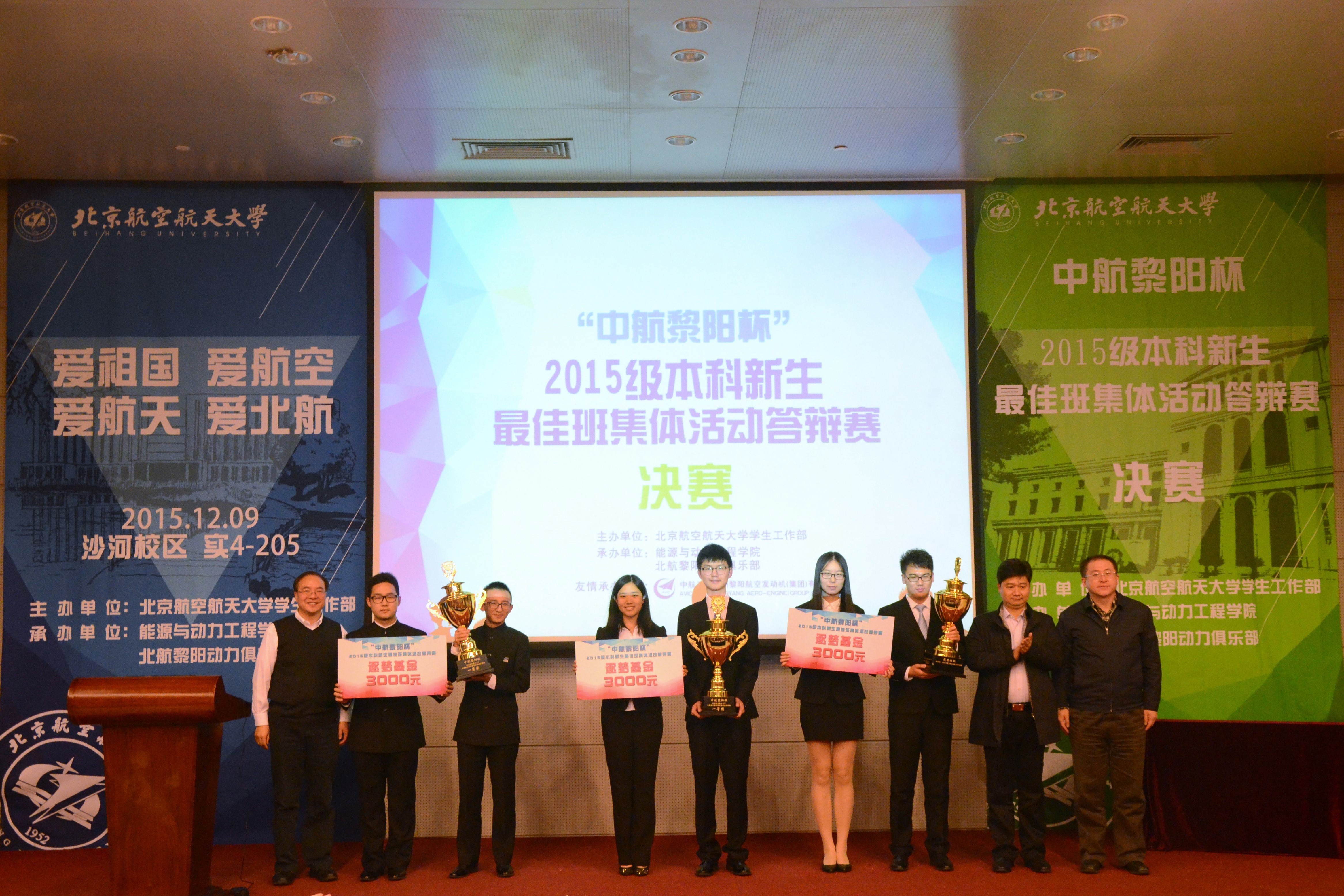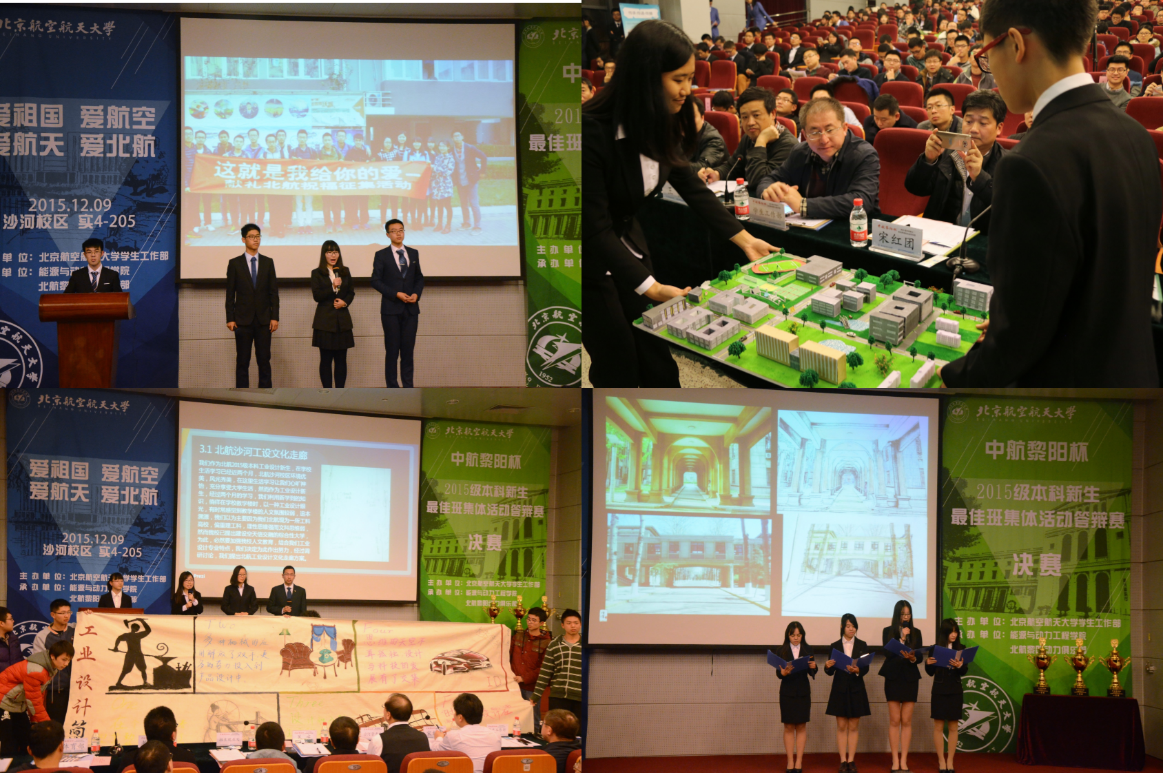据悉,一年一度的北航新生最佳班集体活动答辩赛自1989年以来在金年会每届本科新生中举办,是金年会本科生参与度最高、影响面最广、持续时间最长的一项活动。活动以新生团结协作为原则,以凝心聚力为导向,以特色活动为载体,以班集体发展建设为根本,鼓励新生展现青春风采、树立文明新风、创建优良班风学风,是对各学院2015级本科新生教育工作组织开展情况和效果的全面检验。今年的答辩赛继续在中航工业贵州黎阳航空发动机(集团)有限公司的支持下举办,通过比赛,进一步增进了校企双方的交流互动,搭建了航空企业与低年级本科生交流的平台,受到了学生的普遍欢迎。