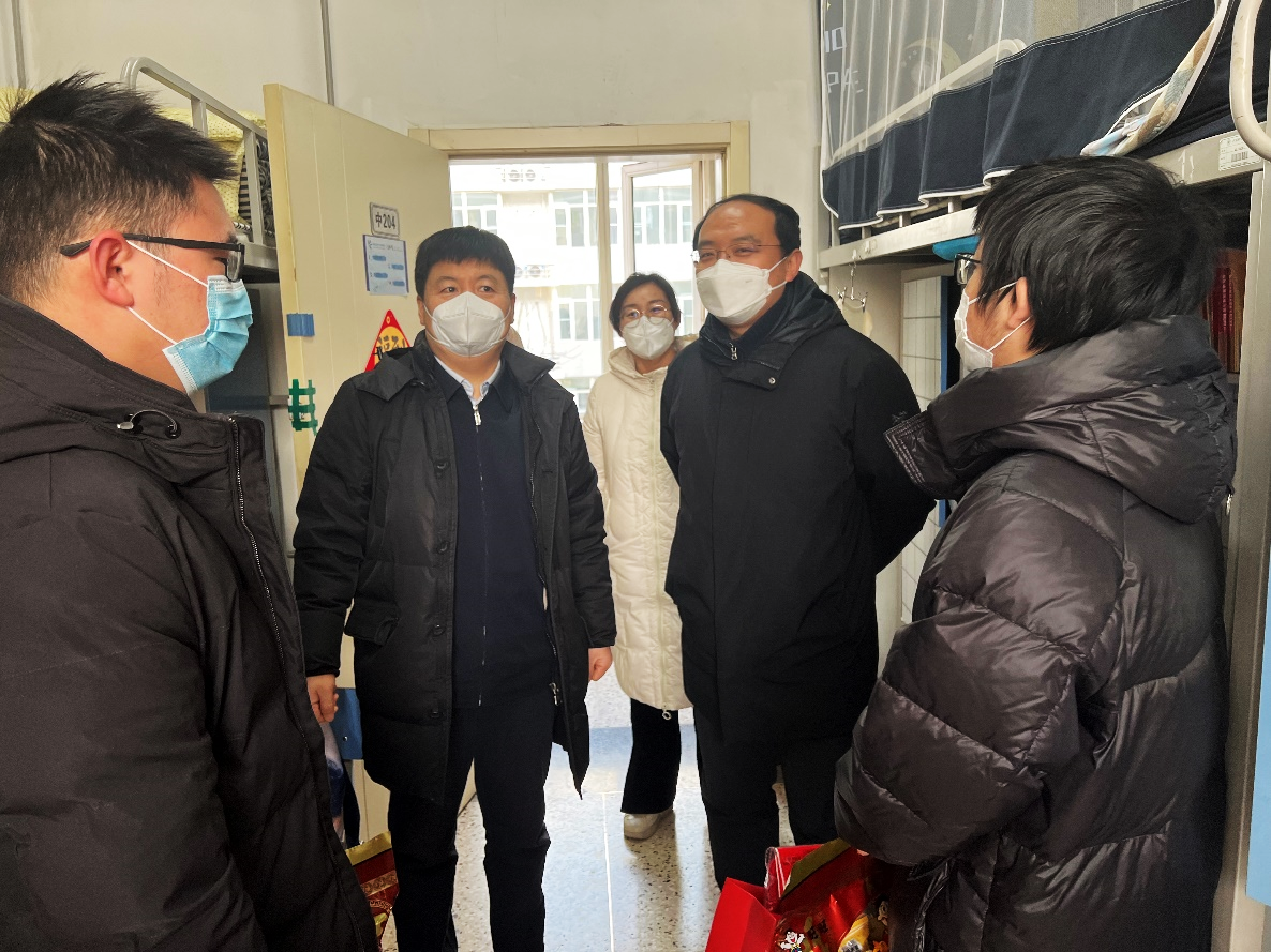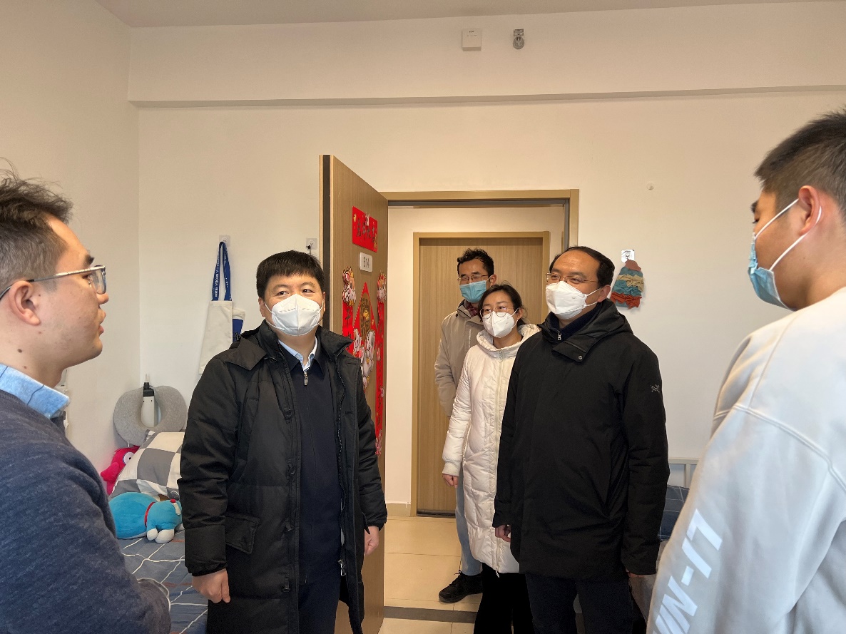 闫院长和董书记走访宿舍,细致询问了学生们的学习生活情况和需求困难,叮嘱大家留校期间做好规划,合理安排学习和科研,注意体育锻炼,保持良好作息。同时,他们叮嘱学生们有任何困难和问题,一定及时联系学院。
