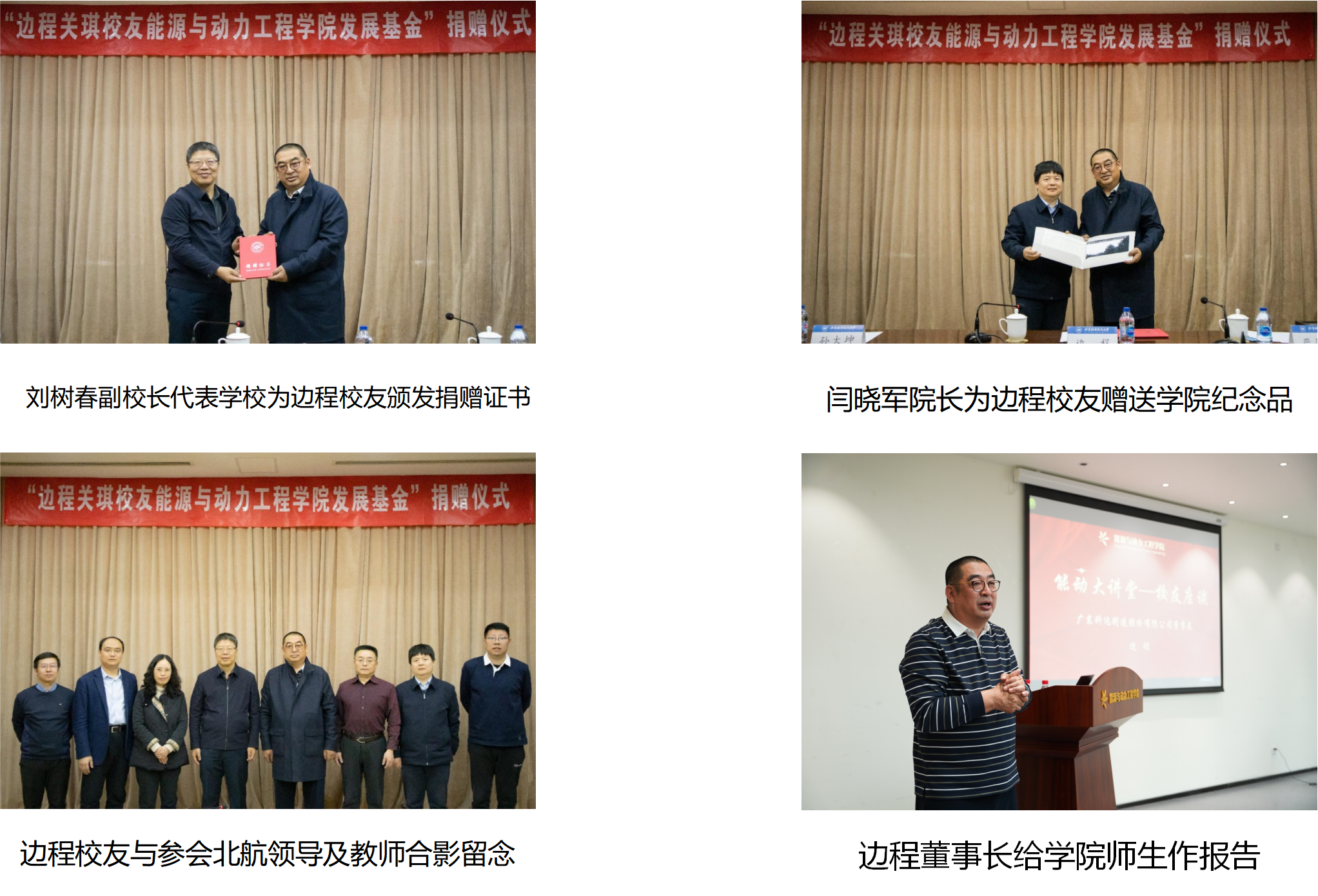 边程校友在捐赠仪式上表达了对母校培养的感激之情,并期待未来能继续回馈母校,为母校及动力学院发展贡献力量,助力学校“双一流”建设。边程校友介绍了科达制造的成长历程与近几年的发展情况,希望能招揽北航优秀研发及管理人才,期望与动力学院继续加强合作,展开多方面交流。