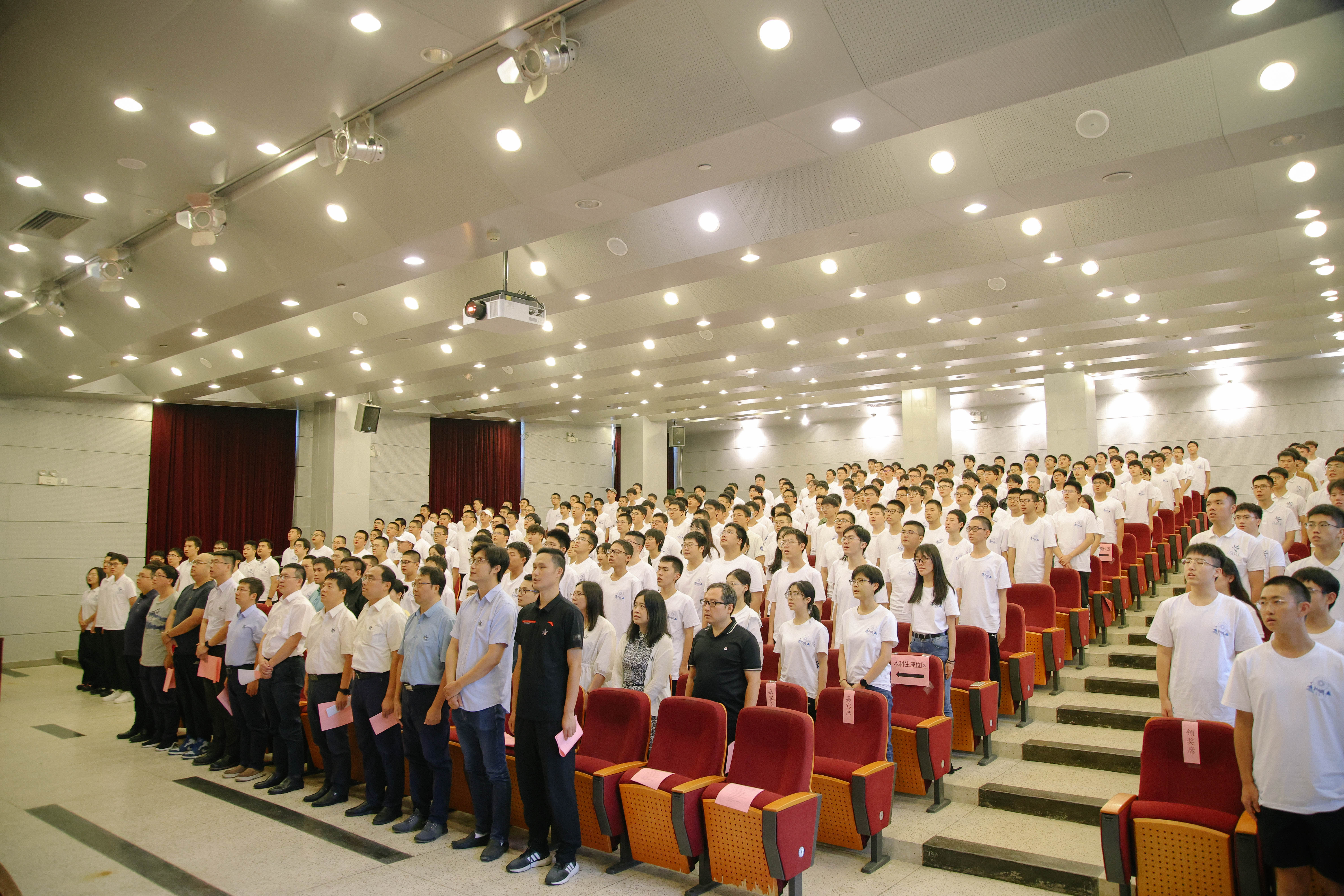 在嘹亮的国歌声中,开学典礼正式拉开帷幕,全体师生齐唱国歌,激昂着“空天报国”的梦想。