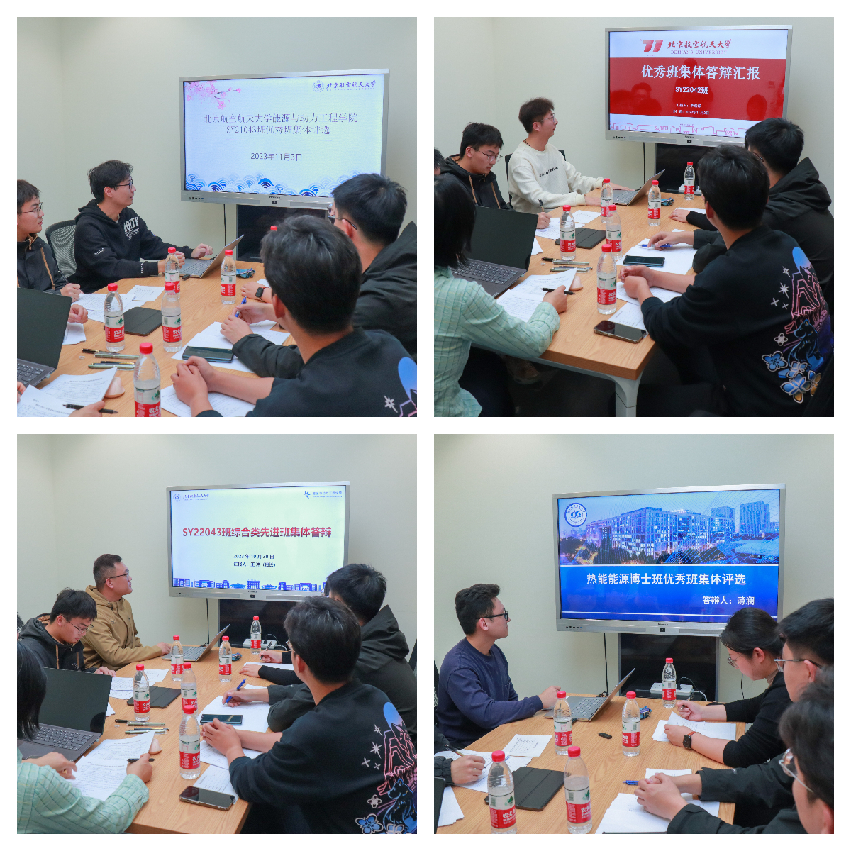 11月3日14:00,jinnianhui金年会诚信至上在F-721开展优秀班集体评选答辩。教师王庆华,专职辅导员李天韵、刘亦泽,兼职辅导员叶豪、赵玉禄、张权以及sy21043、sy22042、sy22043与热能能源博士班的同学代表参与此次活动,活动由魏江楠主持。
