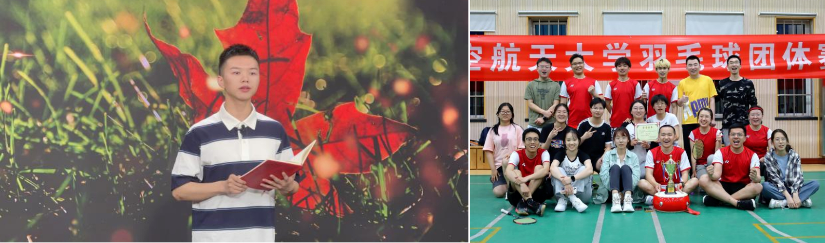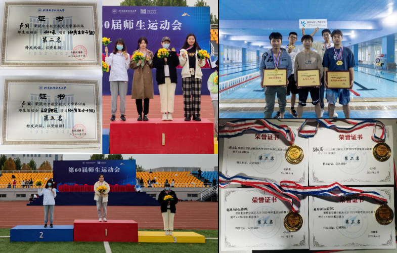 同学们热爱运动,强健体魄,参加校级体育赛事24人次,在运动场上屡创佳绩。同学们积极参加学院篮球赛,勇夺冠军;在北航羽毛球团体赛中获得沙河校区冠军。