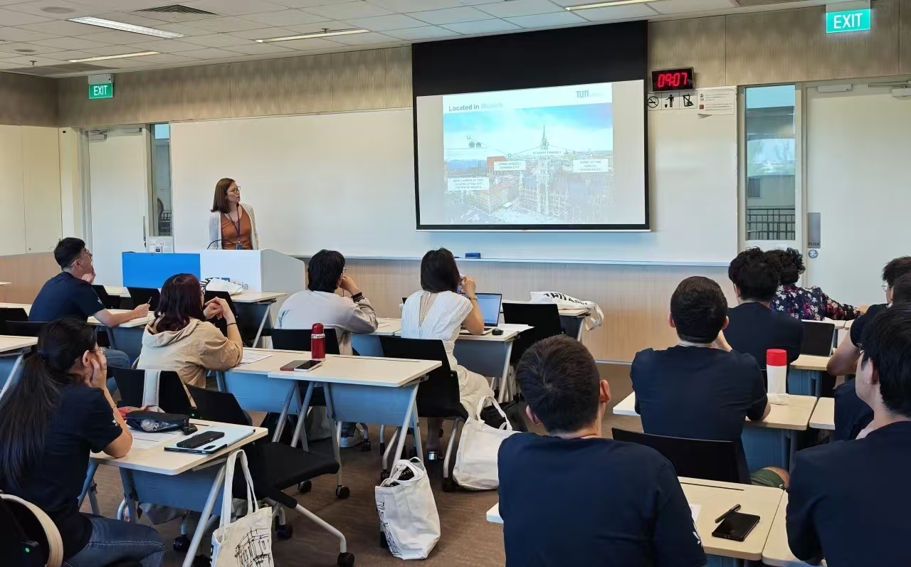 在TUM Asia的欢迎仪式中,同学们了解了慕尼黑工业大学及其亚洲校区的历史沿革、院系设置、培养模式和国际合作等情况,以及本次夏令营的学习内容及参观安排。