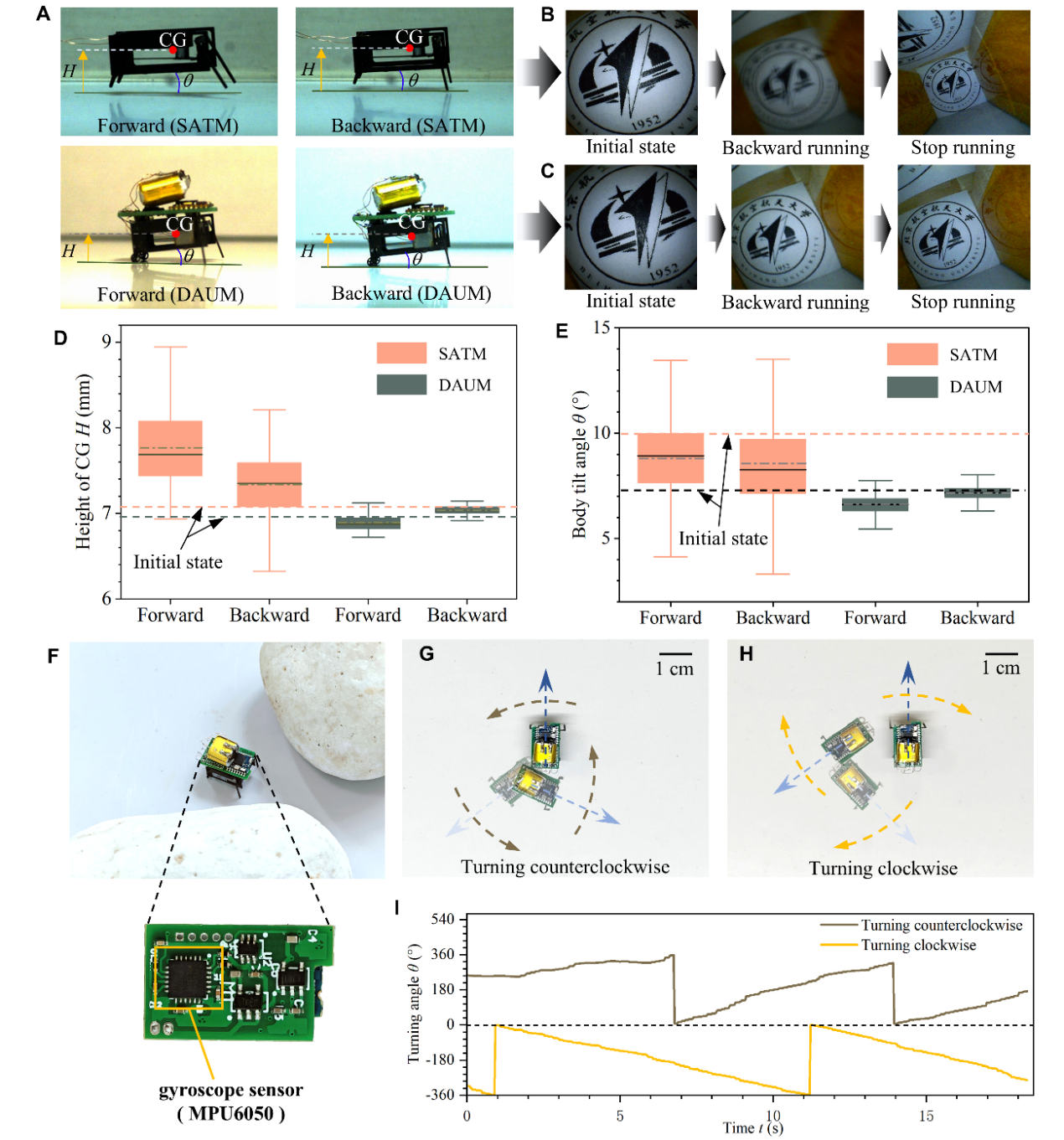 微型机器昆虫具有尺寸小、运动灵活、可达性好等突出优势,在灾后救援、大型机械装备结构检测、信息获取等领域具有广泛应用前景。在上述实际应用场景中,微型机器昆虫往往需要在狭小空间内实现机动爬行,其一旦进入单向通行的“死胡同”,若通道宽度不足以让微型机器昆虫通过转弯掉头,其将面临进退两难的困境。针对这一挑战,团队在前期北航机器昆虫BHMbot原型机的基础上,针对微型动力系统前进、后退双向运动控制原理开展了科研攻关,研制了能够实现原地快速后退的新一代北航机器昆虫“BHMbot-B,BeiHang Microrobot-Backward”。