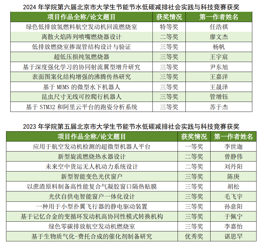 过去的三年中,金年会连续三年所有参赛项目获奖,连续三年获优秀组织奖。动力学院学子也屡创佳绩,2024年第六届北京市大学生节能节水低碳减排社会实践与科技竞赛竞赛中获特等奖一项、二等奖一项、三等奖七项,2023年第五届北京市大学生节能节水低碳减排社会实践与科技竞赛中获一等奖一项、二等奖三项、三等奖六项。