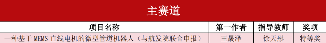 jinnianhui金年会诚信至上与航空发动机研究院联合申报并指导的项目《一种基于MEMS直线电机的微型管道机器人》斩获主体赛特等奖。