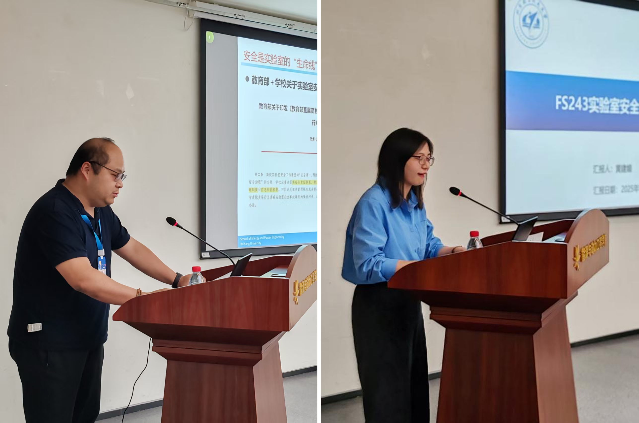 五星实验室安全责任人范雨、黄建媚在会议上分享了实验室日常安全管理的先进经验。范雨向师生讲解了教育部和学校对于实验室安全的要求及规定,着重强调安全是实验室的“生命线”;黄建媚分享了FS243实验室的安全管理经验,推广了有效的实验室安全管理办法。