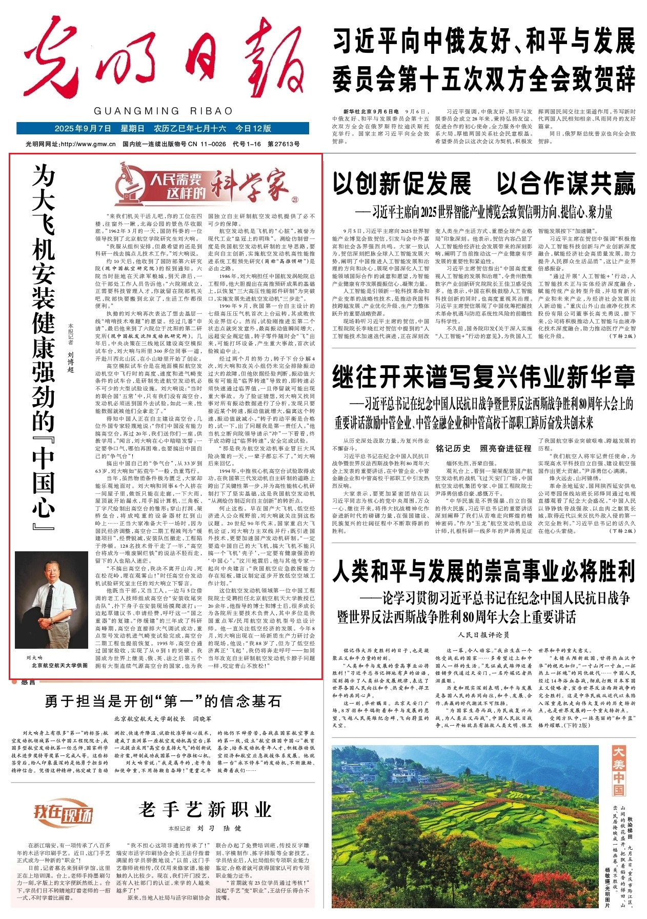《光明日报》头版头条【人民需要这样的科学家】栏目刊发金年会刘大响院士事迹文章:为大飞机安装健康强劲的“中国心”。