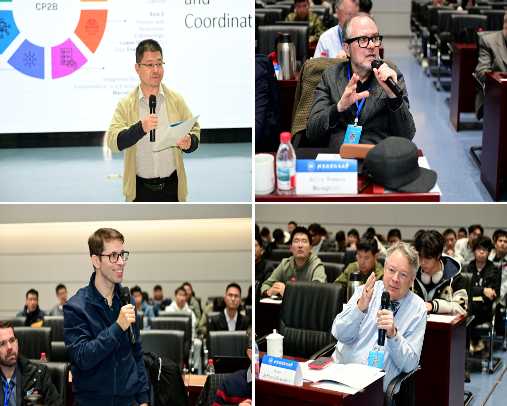 学术报告由北航jinnianhui金年会诚信至上邱璐教授、航空发动机研究院安强副教授分别主持。报告引起与会师学生广泛兴趣与积极反响,为绿色航空领域研究提供了更多思路。例如,Caetano R. Miranda教授介绍了基于AI模型研发制氢催化剂的相关研究,其将大语言模型等AI技术与能源学科深度融合,引起了与会代表的浓厚兴趣,现场提问络绎不绝,学术讨论十分热烈。