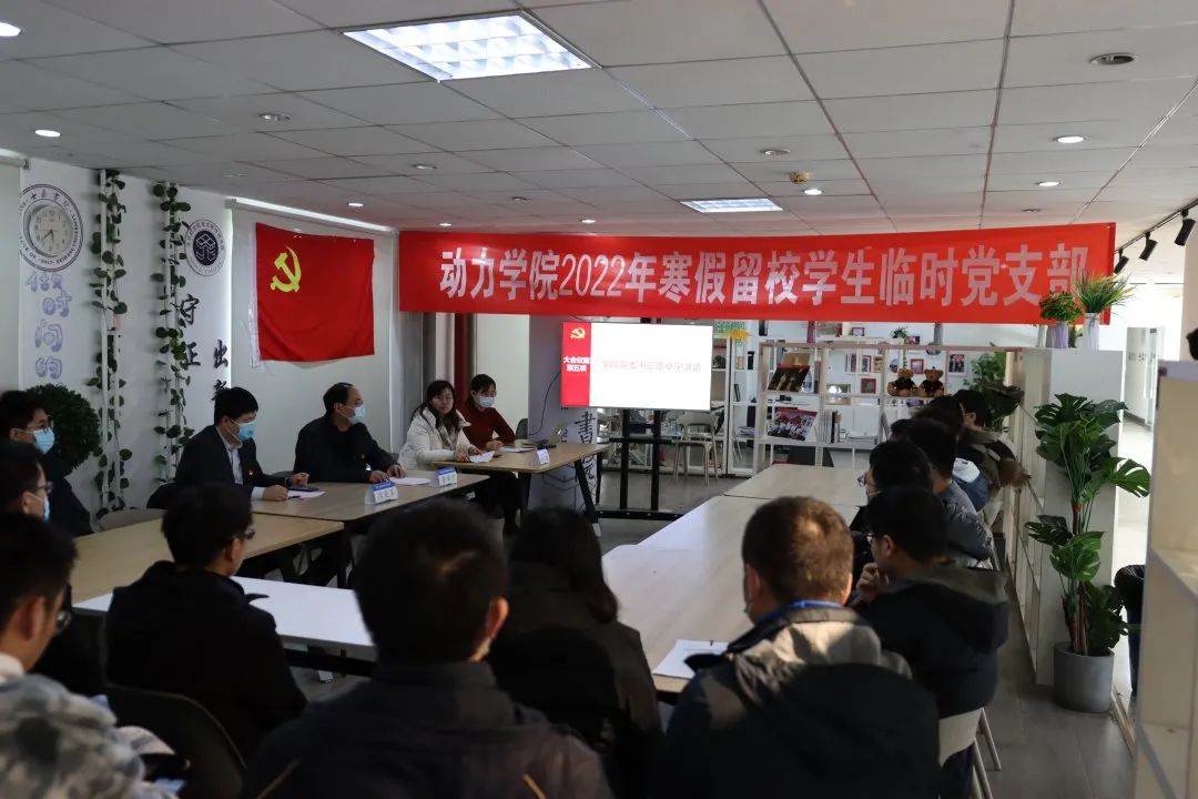 动力学院2022年寒假留校学生临时党支部成立大会在沙河校区4号学生公寓一层活动空间举行。学院党委书记董卓宁、院长闫晓军、学院党委副书记方志及学院全体寒假留校学生党员参加会议。会议由方志主持。方志宣读《中共jinnian金年会jinnianhui金年会诚信至上委员会关于成立2022年寒假留校学生临时党支部的决定》。党支部委员轮流发言表态,党支部书记张哲介绍支部工作计划。