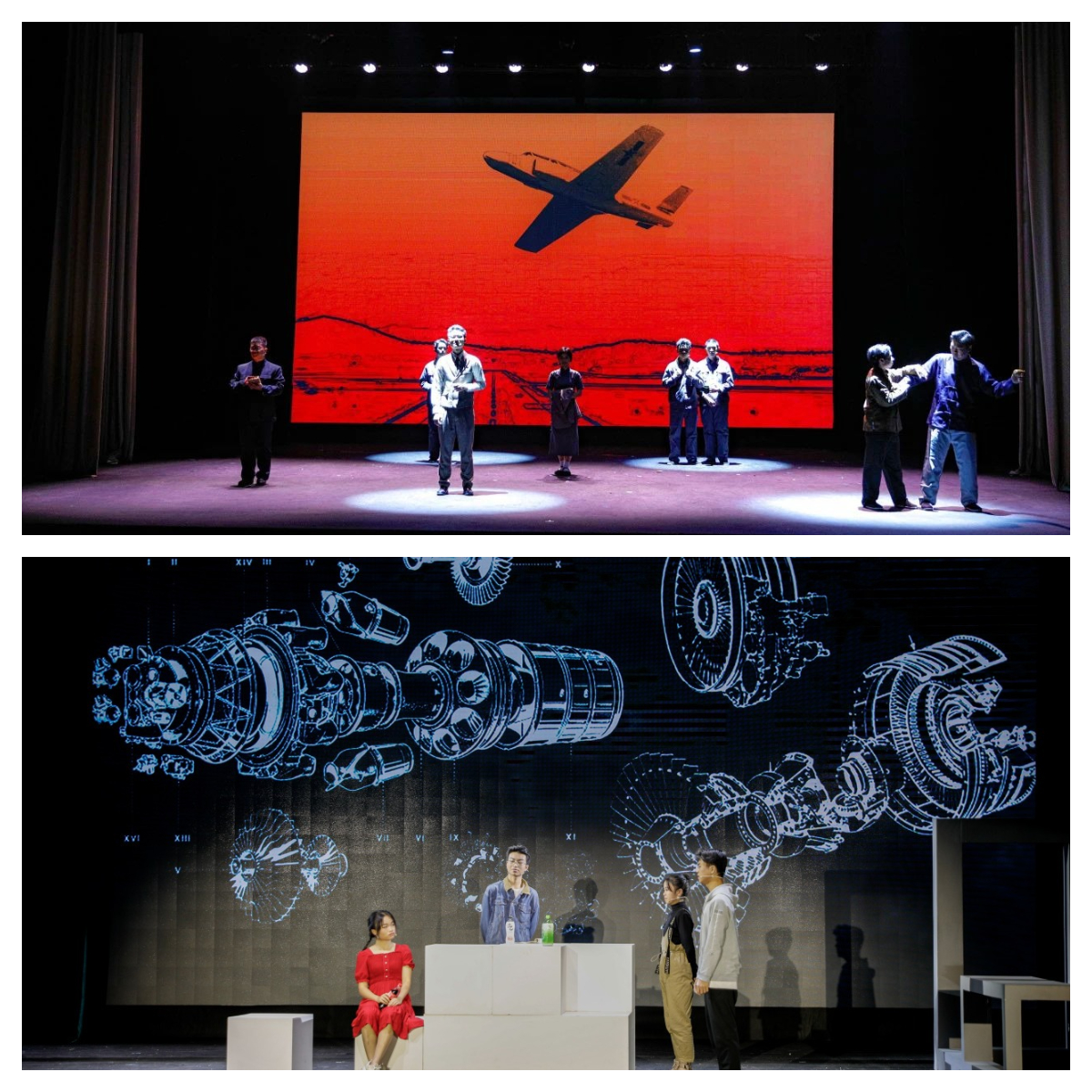 话剧由过去时空和现实时空两条线穿插进行,主要展现跨越八十年的两代大学生为祖国的航空发动机事业前赴后继的路上,奋力拼搏的片段侧写。过去时空线选取吴大观先生随校来到西南联大、选择到大定航空发动机厂工作、带队攻关我国自主设计的第一台喷气式发动机三个重要事件点,再现了吴大观先生航空报国、奋斗一生的激情青春。演员情真意切,观众深受感染。