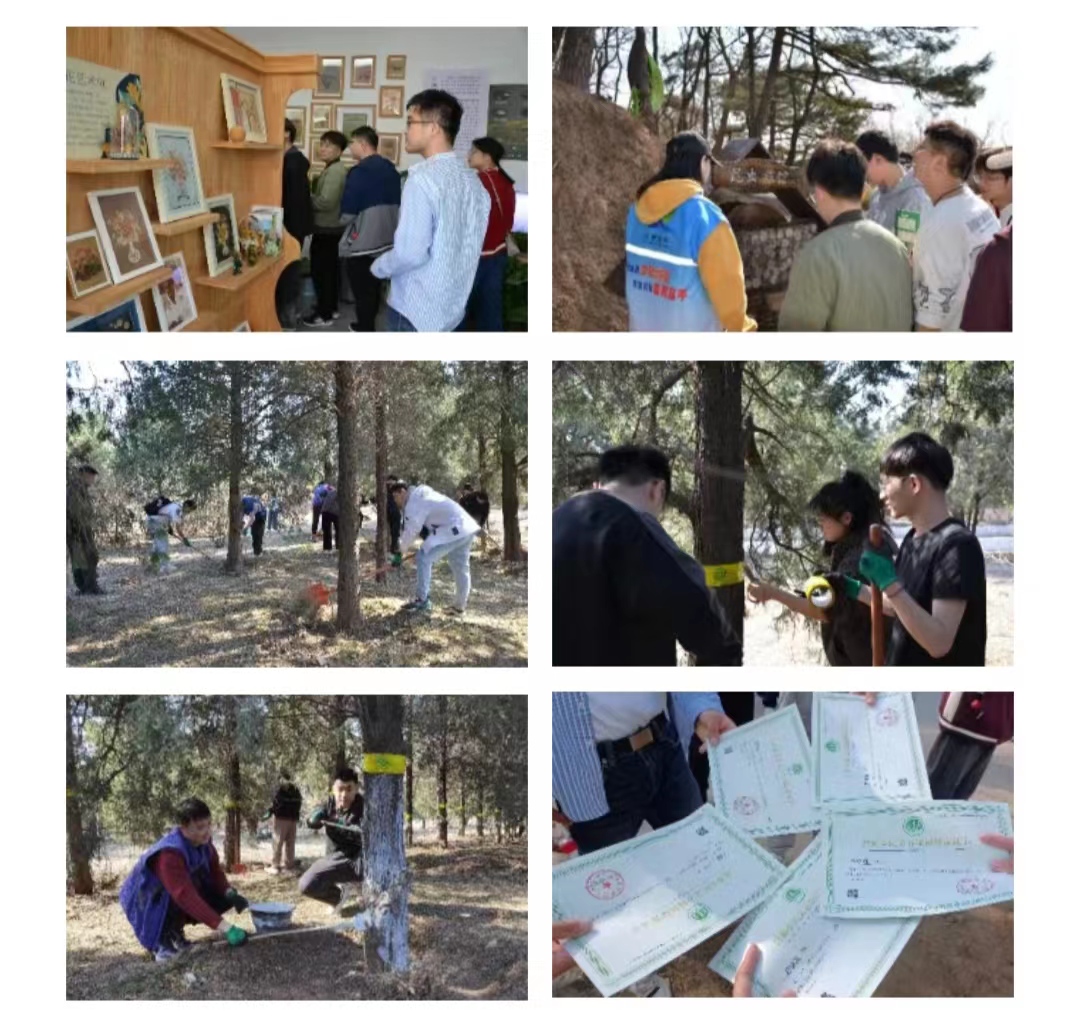 动力学院SY22042党支部、SY22045党支部、SY22046党支部抵达林业工作站后,首先进入互联网+义务植树基地参观科普展览馆和昆虫旅馆,然后正式开始了树苗养护工作,分别完成了松土围堰、粘贴防虫环和树干涂白等任务。并获得了《首都全民义务植树尽责证书》。