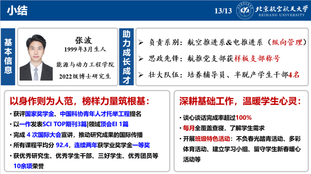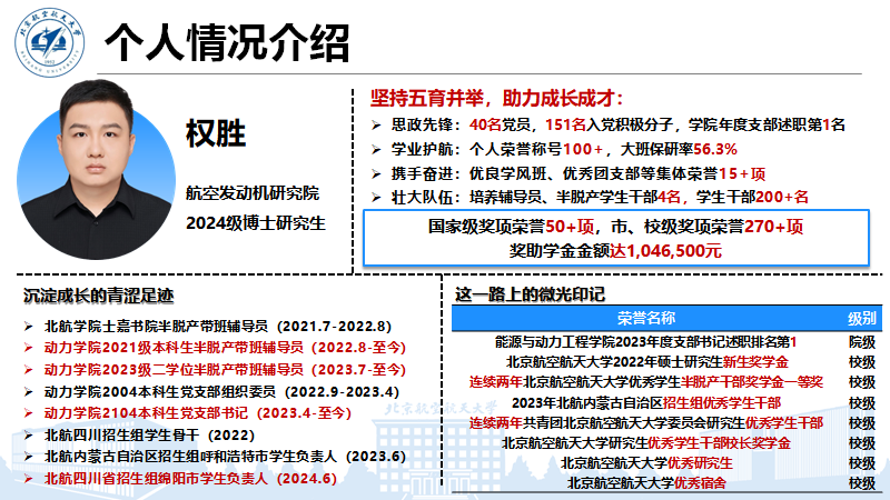 北航2024年优秀学生兼职辅导员奖学金评审圆满落幕,jinnianhui金年会诚信至上航空推进系博士生辅导员张波、2021级本科生辅导员权胜荣获北航优秀学生兼职辅导员奖学金特等奖