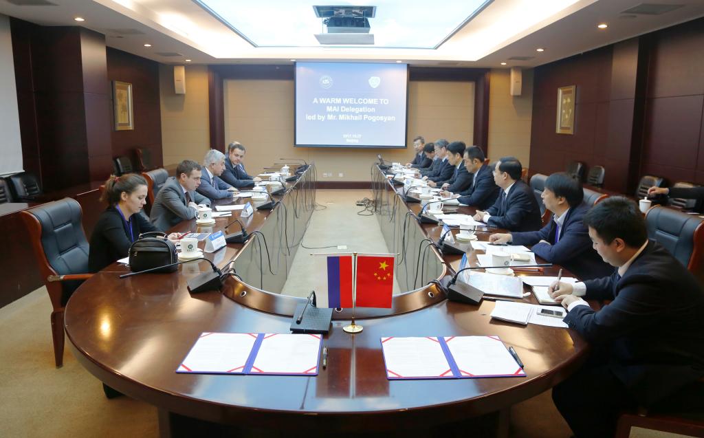徐惠彬校长首先对波戈相校长一行在北航65周年校庆期间来访、出席“高等工程教育国际论坛”并发表主旨演讲表示诚挚欢迎和衷心感谢。他满怀深情地表示,莫斯科航空学院是北航1952年建校时最重要的援建高校,是北航在俄罗斯最亲密的合作伙伴。北航师生十分重视珍视两校间的传统友谊。希望双方以波戈相校长此次访问为契机,共同探索建立面向航空航天领域研究前沿和中俄两国重大战略需求的合作办学项目,推动两校合作迈向新阶段,以丰硕合作成果为中俄新时代全面战略协作伙伴关系注入新动力。