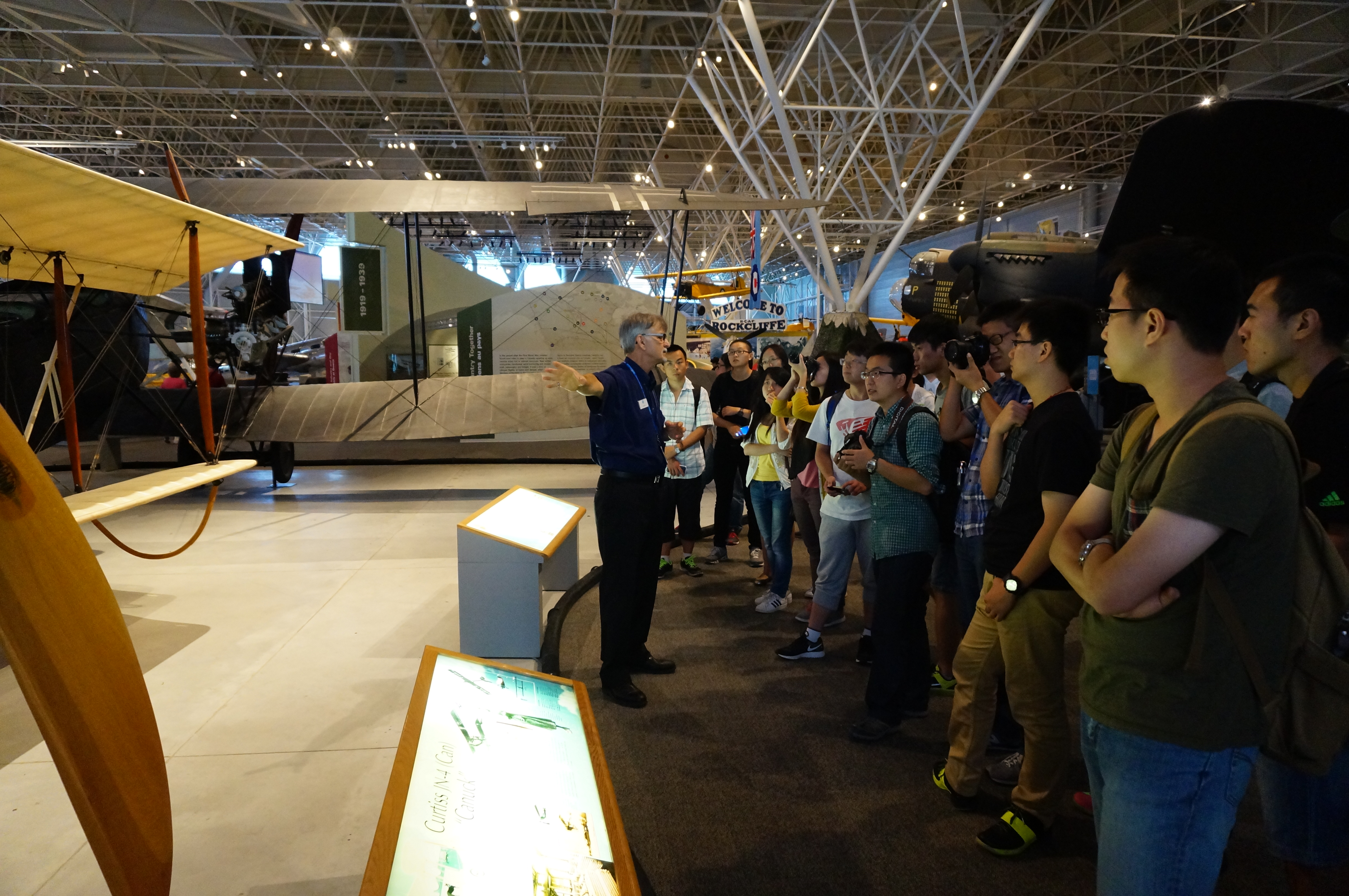 加拿大蒙特利尔当地时间8月6日上午8:00,麦吉尔访学团开始了新一天的行程——参观加拿大航空博物馆(Canada Aviation Museum,位于加拿大首都渥太华)。该博物馆成立于1964年,收藏有大量的民用及军用机型,展现了从一战之前的先驱时期到现在的加拿大航空历史,其中军用飞机中包括多架加拿大在一战、二战、冷战期间在役飞机。在讲解员的解说下,同学们认真地参观并学习,不时向讲解员提出不懂的问题。馆内还陈列着一架构造十分精致的涡轮喷气式发动机(The Canadian Turbojet),可驱动飞机时速达975千米。同学们都被这台发动机的精美结构所深深吸引,纷纷驻足欣赏,合影留念。