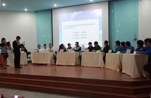 在一段节能减排主题视频、参赛队伍创意展示中,决赛拉开帷幕。此次进入决赛的12支队伍是从全校54支队伍中脱颖而出的,是在节能减排知识方面的精英。决赛分为两个环节,第一环节是将12支队伍均分为两组,经过抢答题和限时题的角逐,位于前6名的队伍晋级到第二阶段,之后通过动手题、趣味题、风险题和亲友互动答题,决出名次。现场气氛紧张而又欢乐,台上同学头脑敏捷、创意无限,充分展示出了团队的协作力、丰富的知识储备;台下同学积极互动、热闹观战,也展示出了很强的答题实力。最终,一等奖由心随指动队获得,二等奖由党校代表队获得,三等奖由低碳美丽602队获得。